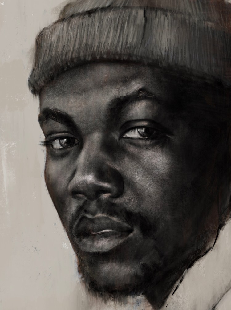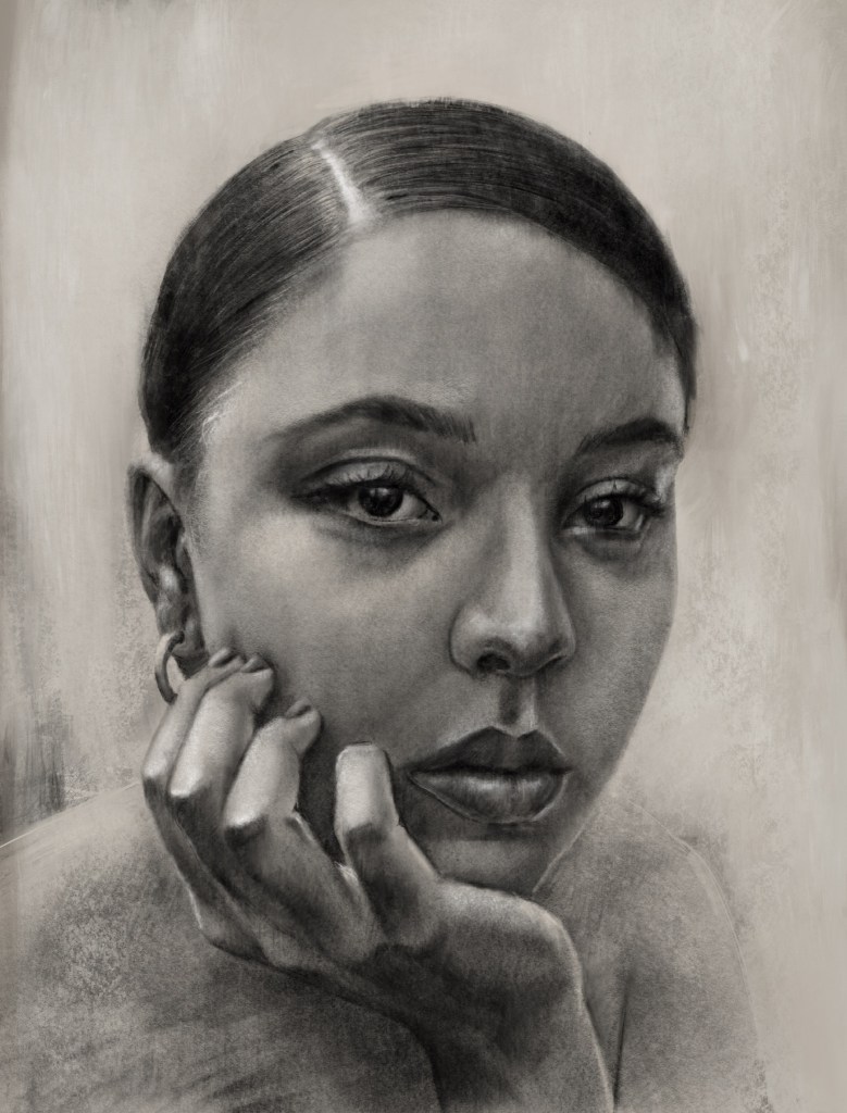 La canción se llama Blame y los retratos están hechos en Procreate con pinceles de carbón, acuarela, tinta y lápiz.