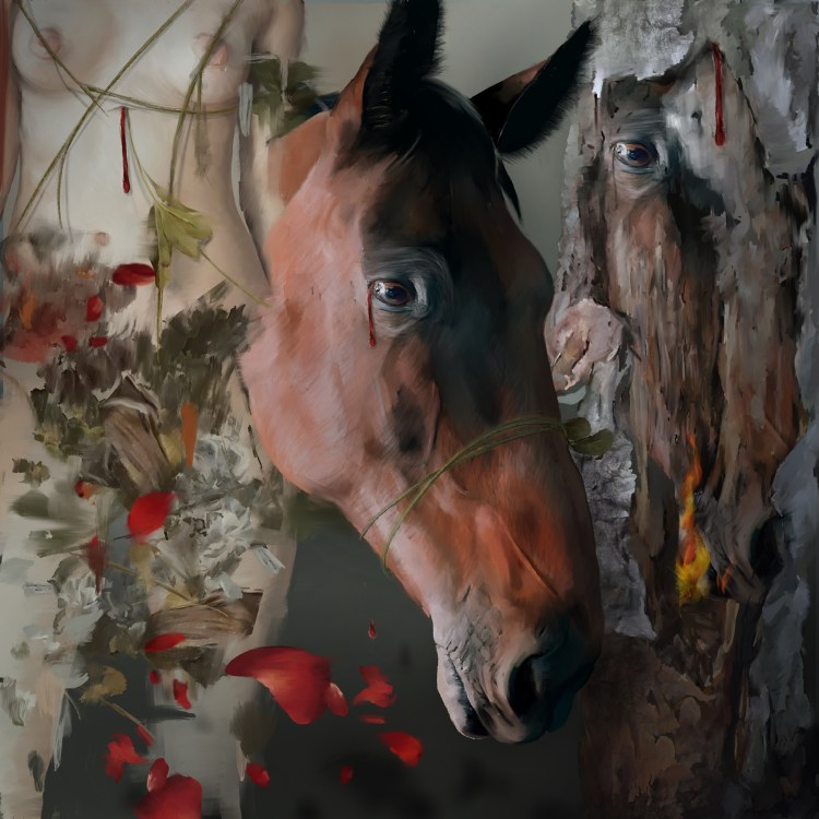 Del primero contacto con la pintura digital surgió La Llorona, un díptico que se rompió al convertirse la primera parte en portada del vinilo de 10″ Letargo, de Jardín de la Croix.