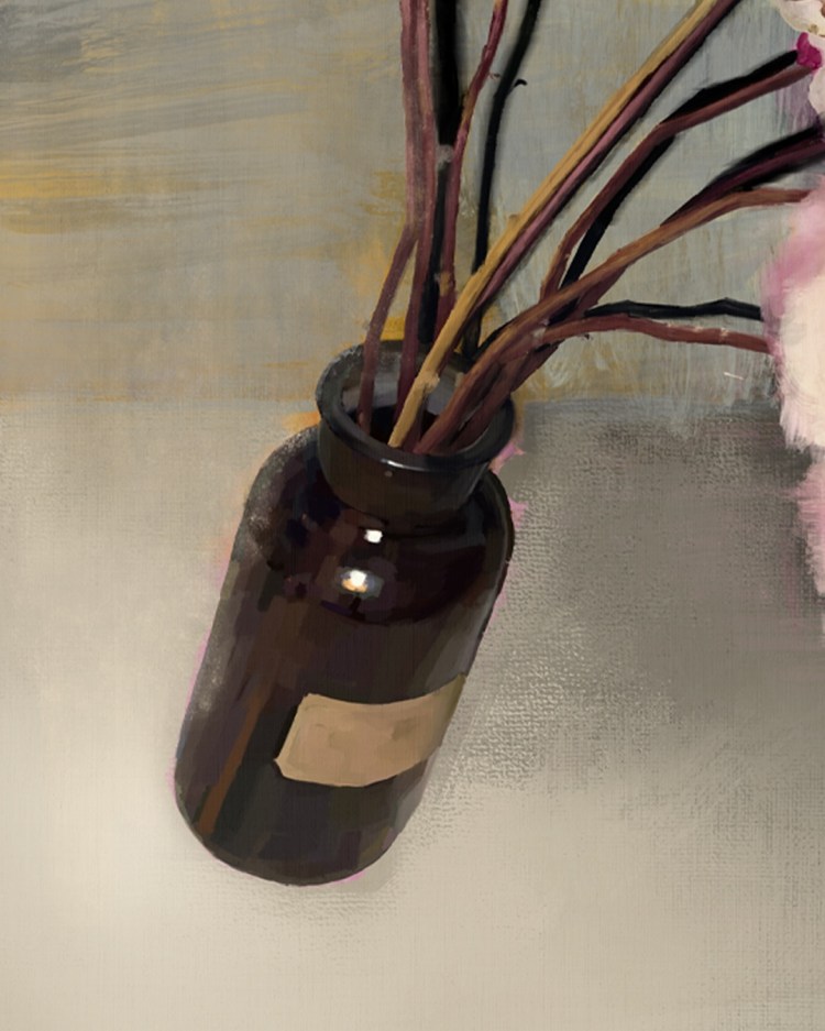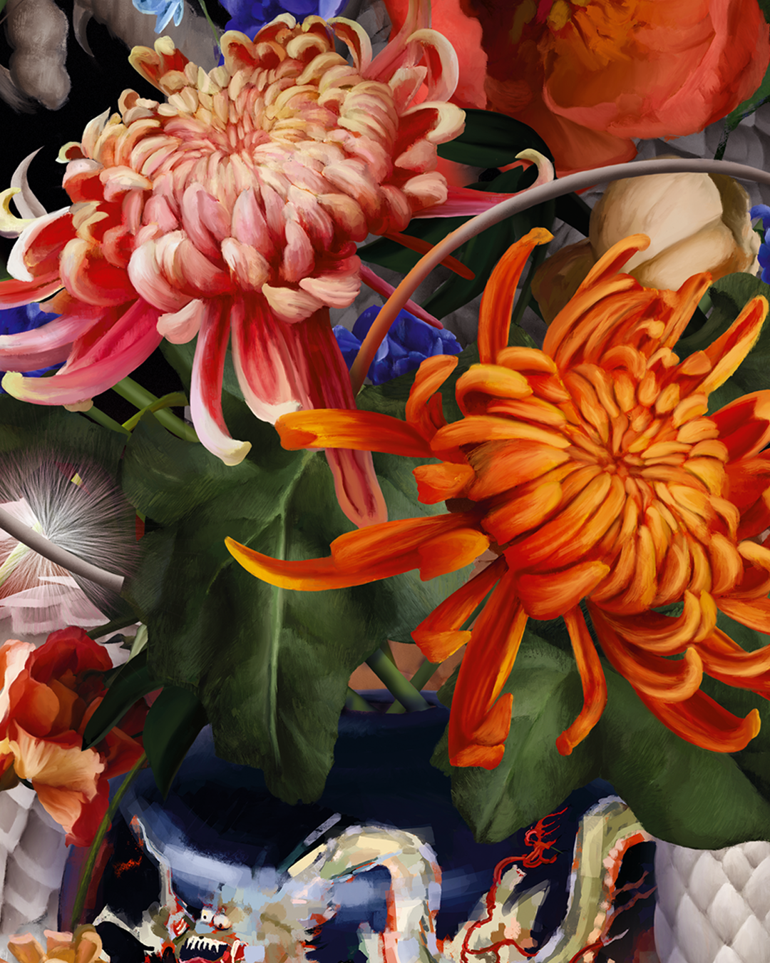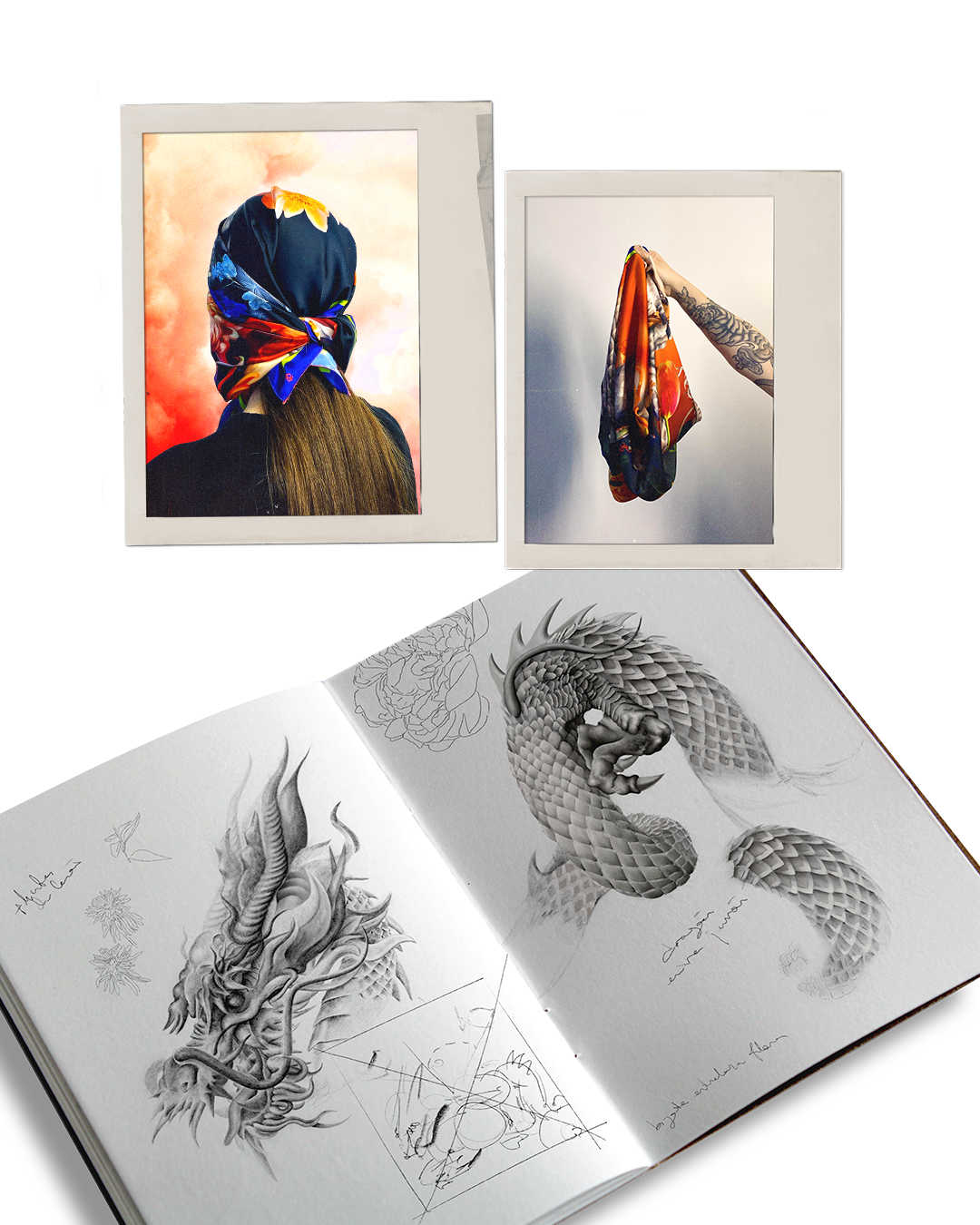 Pintura digital sobre semiseda reciclada Grs, 100% poliéster.